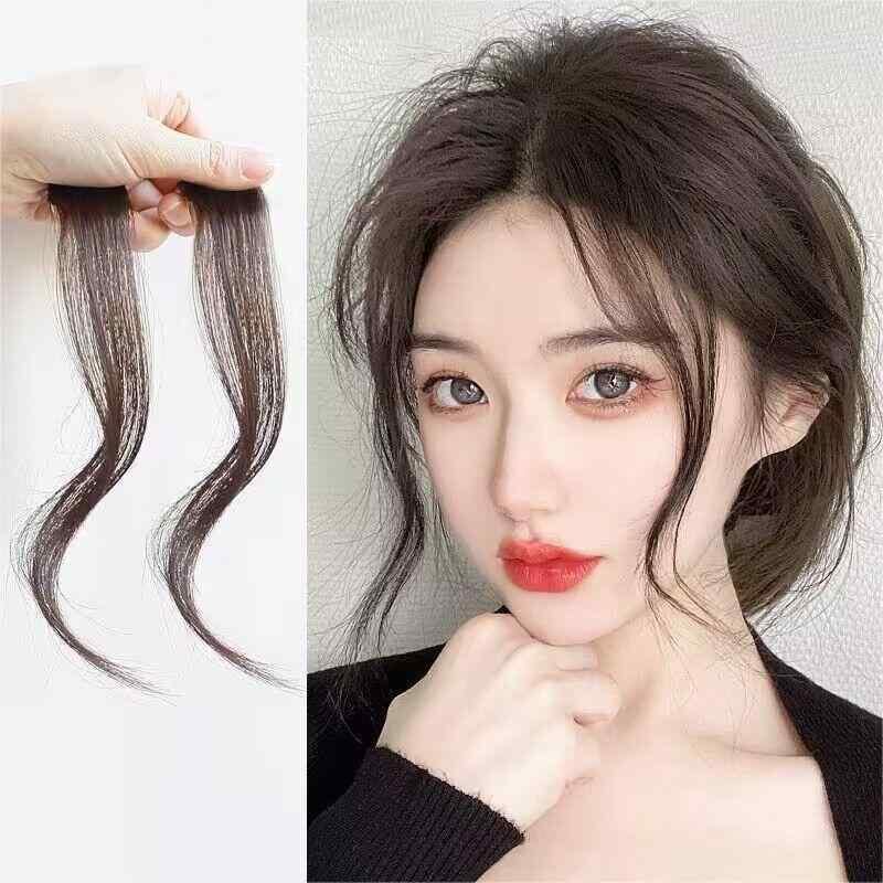 前髪ウィッグ レディース センター分け シースルーバング 触角バングス 自然な付け前髪 耐熱ファイバー製 小顔効果 簡単装着 クリップ式 イメージチェンジ 黒髪 ブラウン系