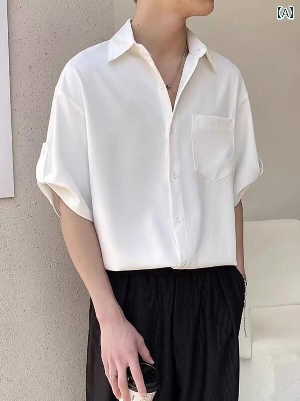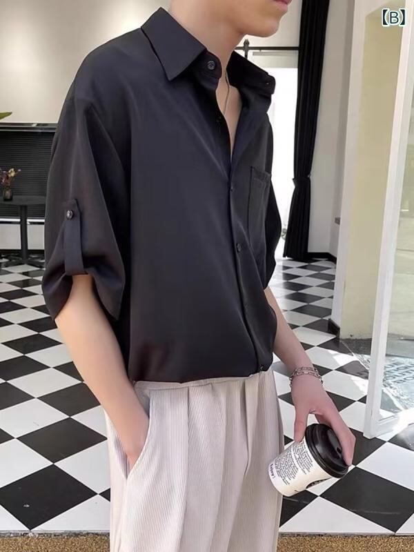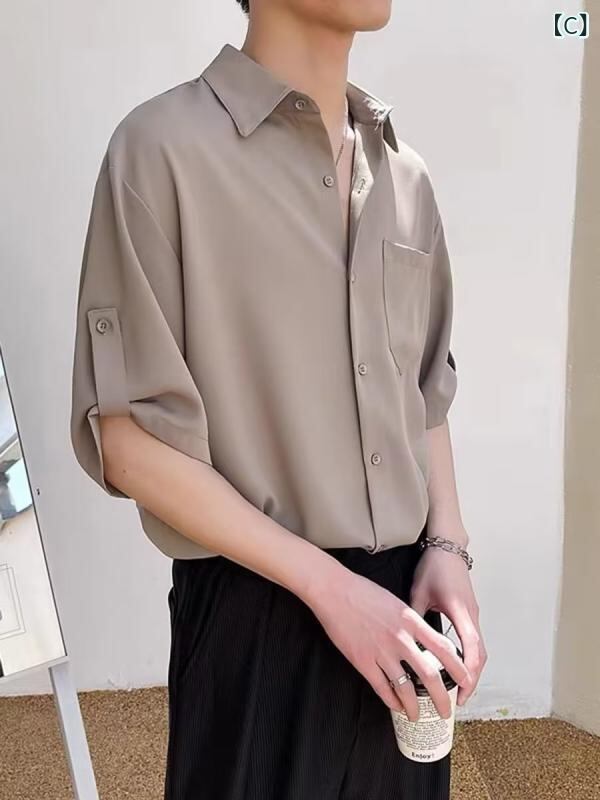 シャツ メンズ 夏用 接触冷感 七分袖 半袖 ゆったり 開襟シャツ ポリエステル 薄手 ウォッシャブル 大人カジュアル 高級感 デイリーユース
