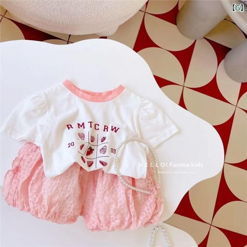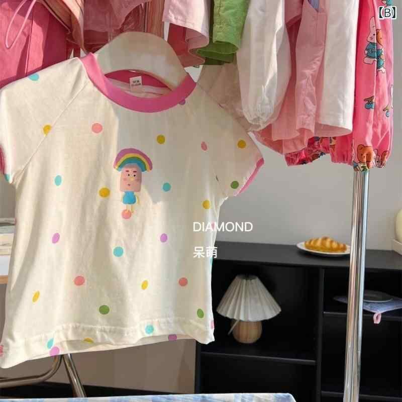 キッズ 女の子 ベビー 夏 綿 コットン 半袖 Tシャツ ショートパンツ 水玉 ドット柄 キャラクター柄 韓国風 カジュアル おしゃれ 上下セット