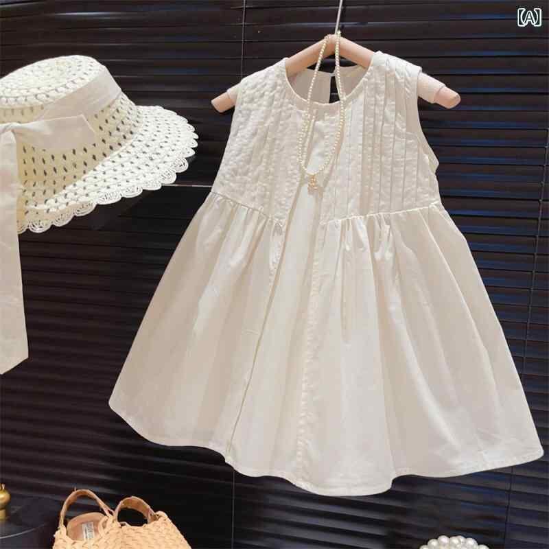 ワンピース キッズ 女の子 綿100% ノースリーブ プリンセス ドレス ウエストギャザー 無地 Aライン サマードレス カジュアル 夏服 おしゃれ かわいい 柔らかい 肌触り 普段着 小学生 オフホワイト ブルー ブラウン