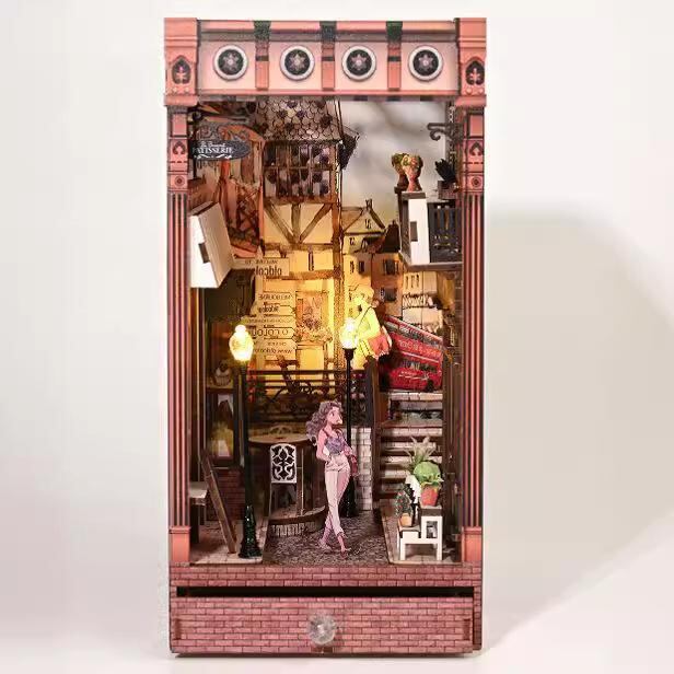 ミニチュアハウス 手作り DIY 木製 立体 組み立て式 ブックエンド ジオラマ ヨーロッパ街並み 精巧な模型 インテリア雑貨 置物 誕生日 プレゼント ギフト