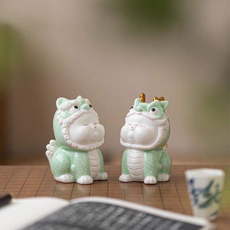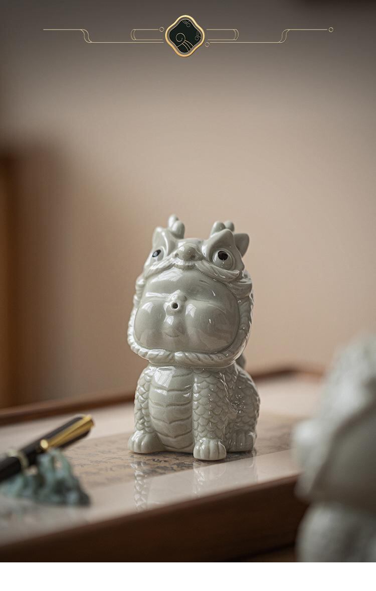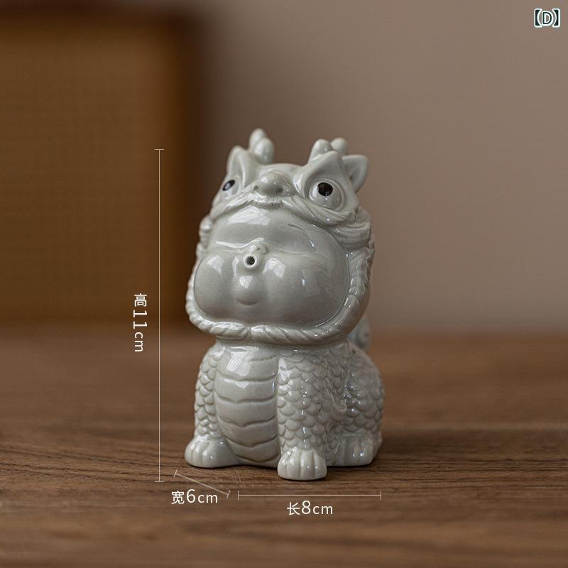 置物 かわいい 干支 辰 龍 獅子 陶器 セラミック 青磁 グレー 紫砂 おしゃれ ユニーク リビング 玄関 卓上 デスク インテリア 装飾 飾り物 縁起物 ラッキーアイテム 招福 吉祥 開運 和風 中華風 オーナメント