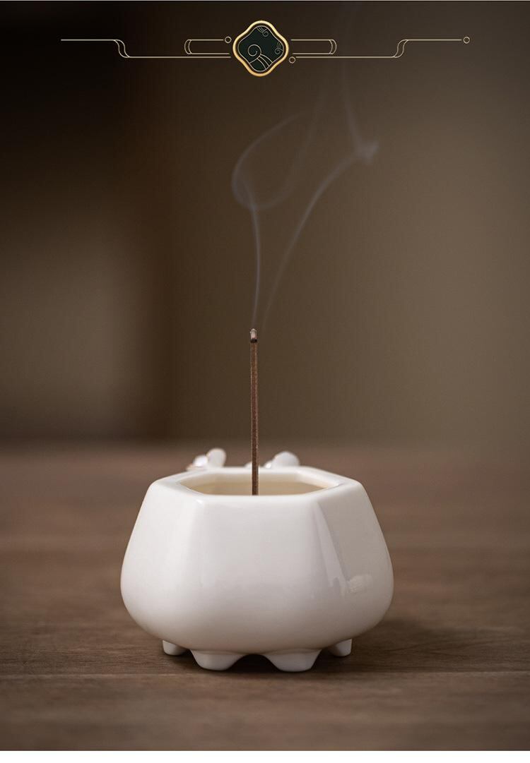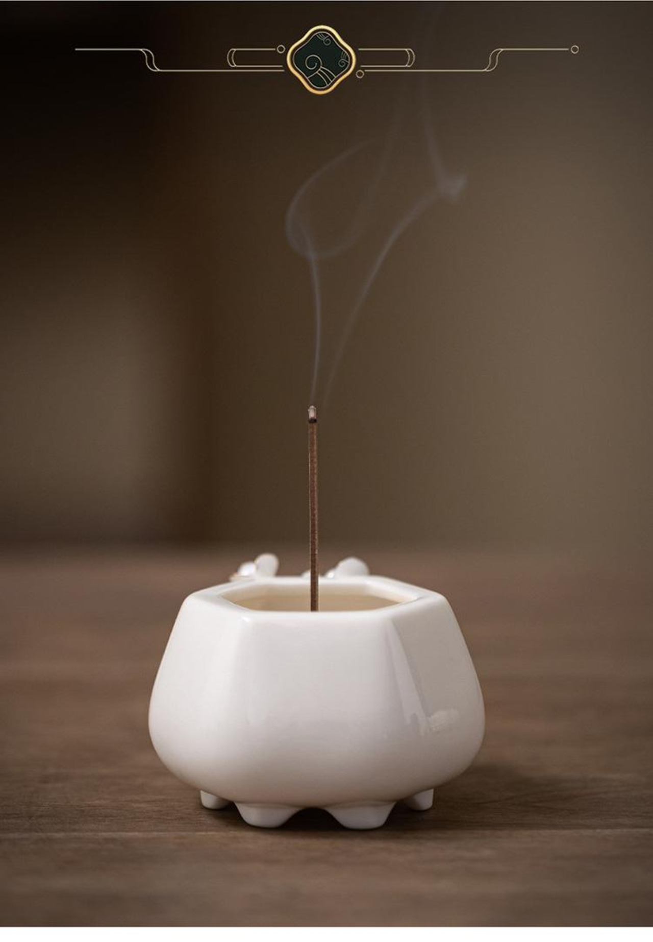 香炉 陶器製 白磁 蓮の花 手作り 花細工 ミニ香炉 自宅用 室内用 お香立て 線香立て 香皿 香器 癒し 瞑想 リラックス用 モダン デザイン