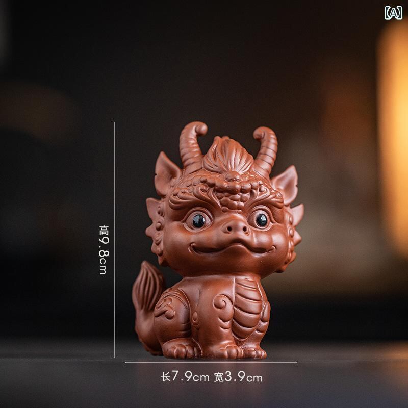 茶寵 辰年 龍 紫砂 置物 陶器製 かわいい ミニドラゴン 縁起物 招福 ラッキーアイテム 開運グッズ 中華風 風水 デスク飾り 卓上オブジェ 茶台インテリア 経年変化