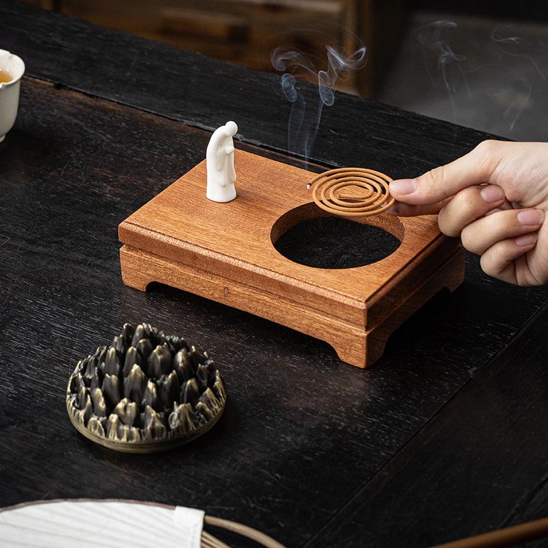 香炉 禅風 和モダン 無垢材 天然木製 長方形 箱型 茶道 室内用 お香立て 置物 檀香 沉香 線香 棒香 コーン香対応 リビング 寝室 玄関 癒し 瞑想 リラックス アロマ インセンスホルダー