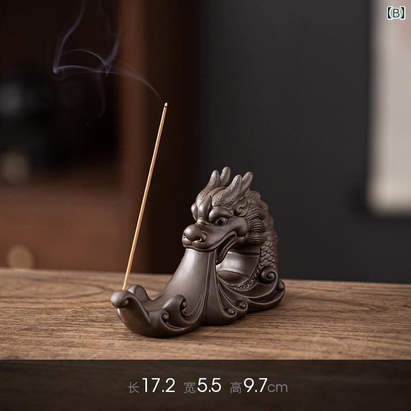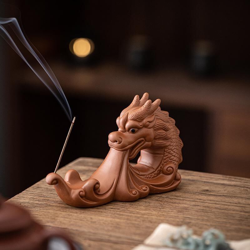 香炉 紫砂 祥龍 水遊び 龍モチーフ スティック香立て 自宅用 室内用 インテリア 茶道 書斎 リビング 玄関 オブジェ 開運 縁起物 置物 和風 中華風 癒しアイテム