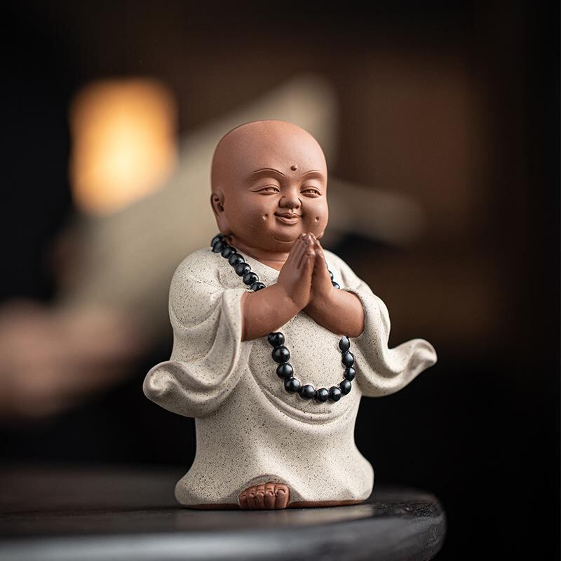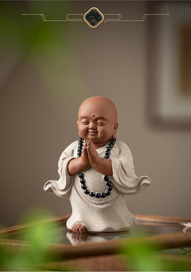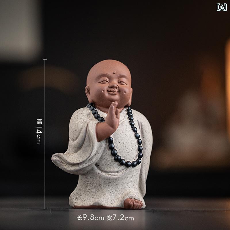 置物 かわいい 小坊主 フィギュア 禅風 和風 癒し 紫砂 陶器 リビング 玄関 インテリア おしゃれ 飾り棚 デスク 瞑想 オブジェ 人形 穏やか 笑い顔