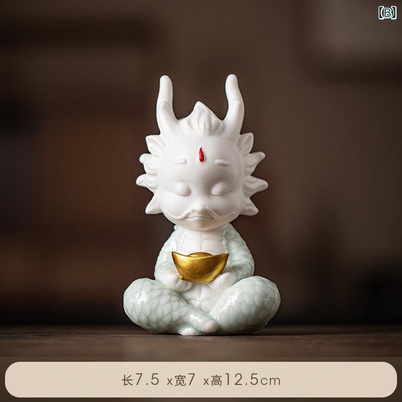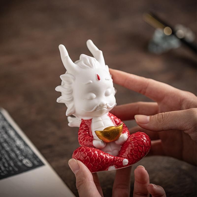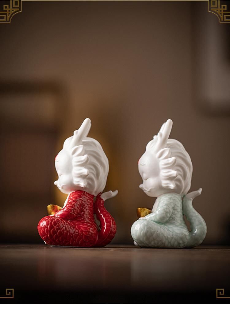 置物 辰 龍 ドラゴン 陶器 セラミック製 ユニーク かわいい 金運 開運 招福 縁起物 リビング 玄関 デスク 卓上インテリア オブジェ 装飾品 マスコット 干支 辰年
