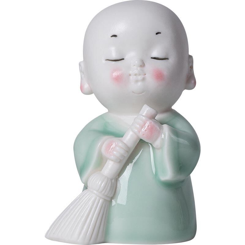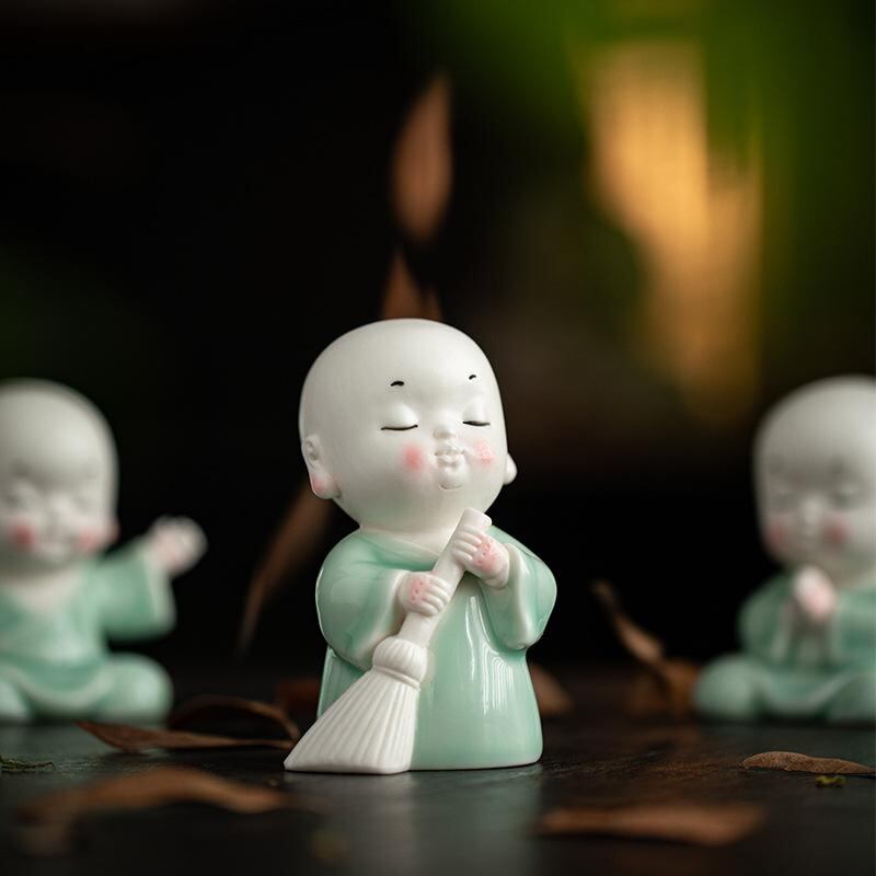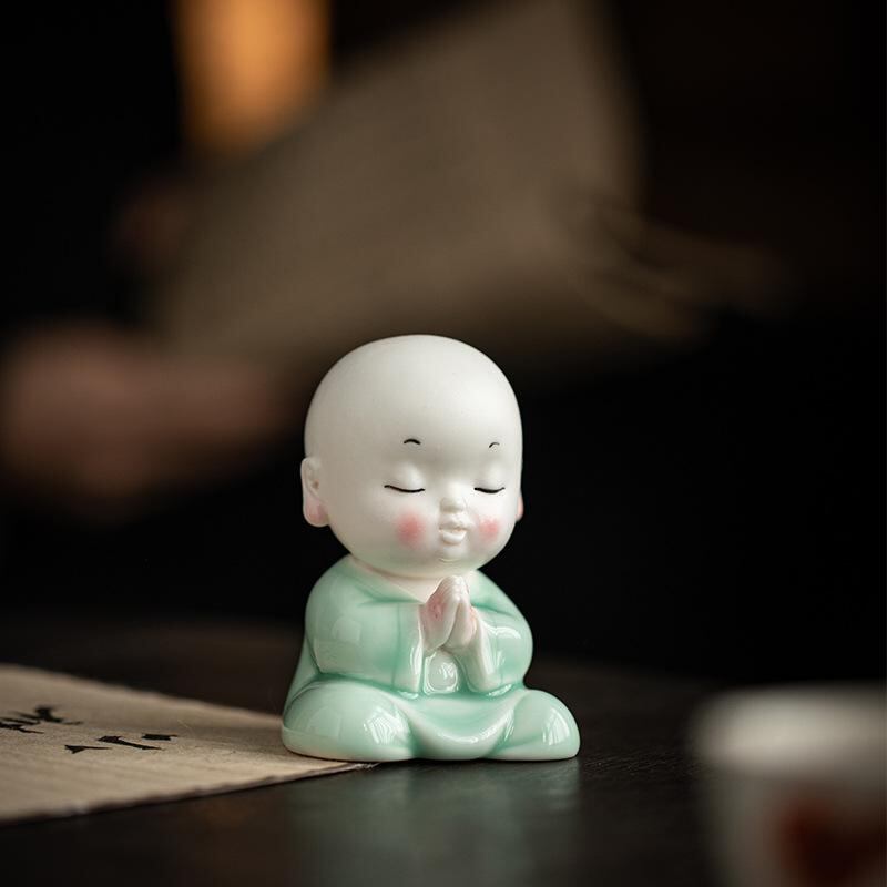 置物 かわいい 小坊主 陶器製 禅風 和風 アジアンテイスト 沙弥 人形 フィギュア デスクトップ 卓上 飾り 癒し系 工芸品 リビング 玄関 インテリア雑貨
