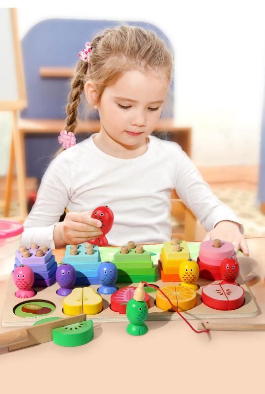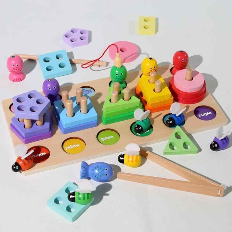 知育玩具 キッズ 幼児 ベビー 木製 おもちゃ 積み木 ブロック 形合わせ パズル 釣りゲーム 脳トレ 手と目の協調性 集中力 室内遊び 誕生日 プレゼント