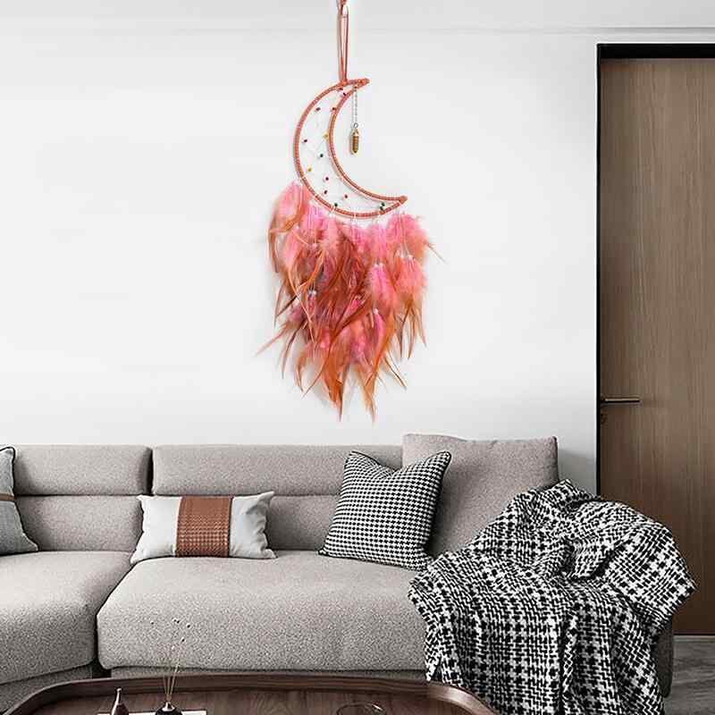 ドリームキャッチャー 月 ムーン 手編み ハンドメイド LEDライト付き ウォールデコ 壁飾り ウィンドチャイム 風鈴 インテリア雑貨 室内装飾 おしゃれ 癒し プレゼント ギフト | cybercart