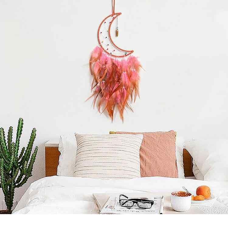 ドリームキャッチャー 月 ムーン 手編み ハンドメイド LEDライト付き ウォールデコ 壁飾り ウィンドチャイム 風鈴 インテリア雑貨 室内装飾 おしゃれ 癒し プレゼント ギフト