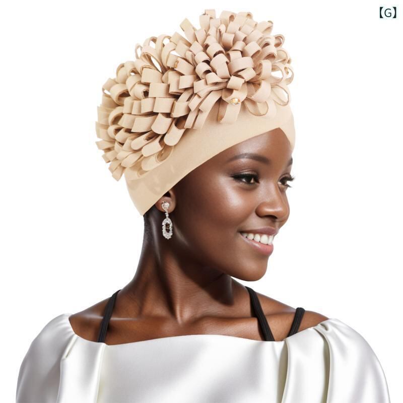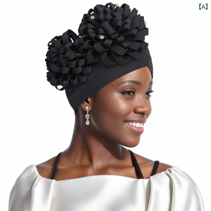 ターバン レディース ヘッドラップ サイドフラワー 大花柄 ポリエステル ソフト素材 オールシーズン対応 普段使い インド風 アフリカ風 エスニック カジュアル 多色展開