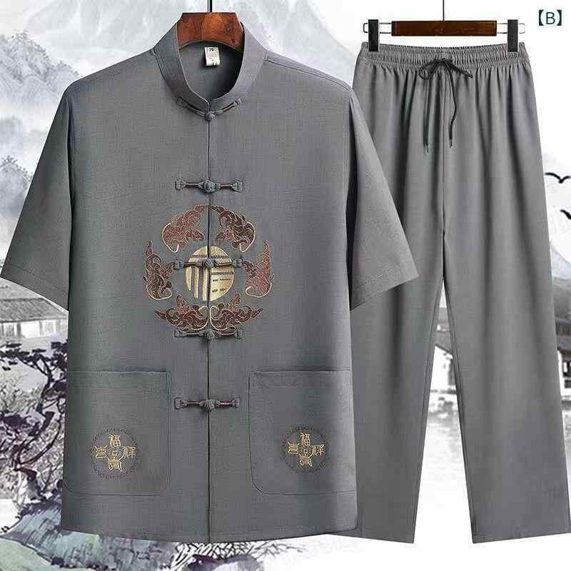 ・カテゴリ: 半袖唐装・スタイル: カジュアル、中国風・性別: メンズ・対象: 高齢者・素材: ポリエステル80-90%・デザイン: ポケット装飾・加工: 刺繍・カラー展開: ライトグレー、ダークグレー、ベージュ、ネイビー、ワインレッド、オリーブグリーン・サイズ展開: 39、40、41、42、43、44
