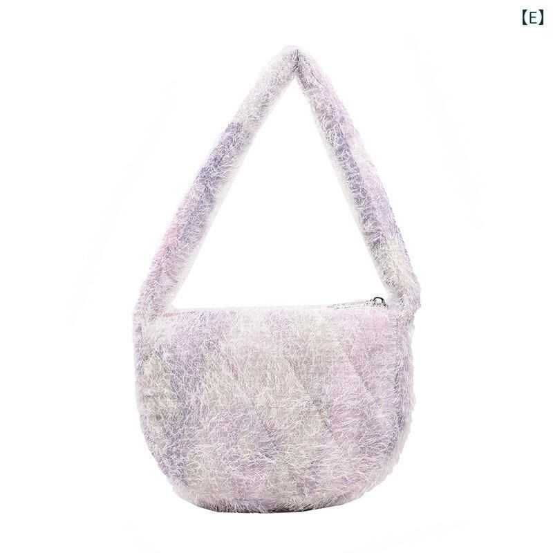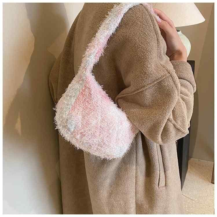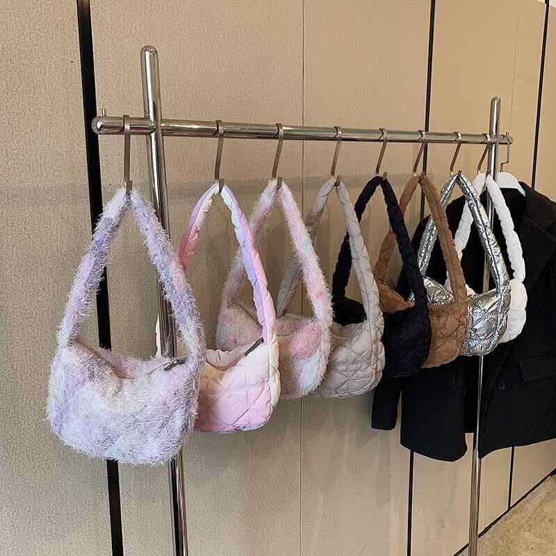 ショルダーバッグ 雲朵バッグ 韓国風 ピンク グラデーション ふわふわ ギャザー 大容量 斜めがけ パフィー モヘア もこもこ デイリーユース