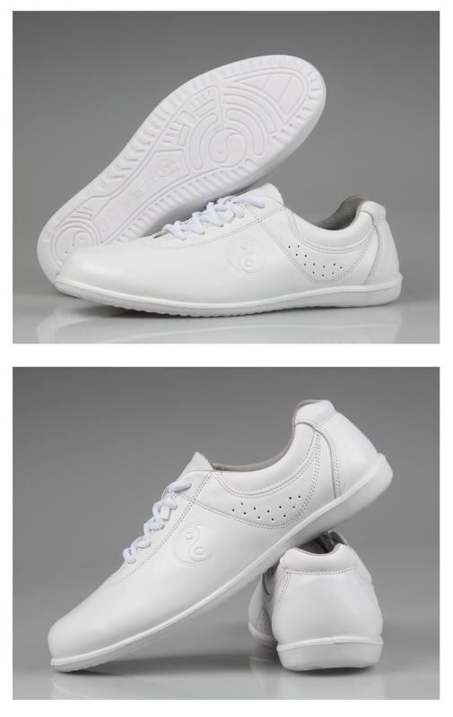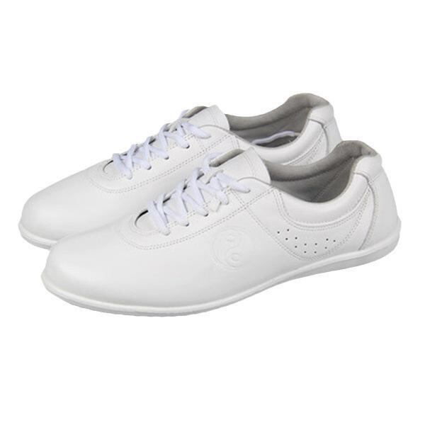太極拳シューズ 男女兼用 牛革 武術 カンフー 練習用 軽量 クッション性 衝撃吸収 ローカット レースアップ 室内履き スポーツ 運動靴 コットン裏地 PUソール ホワイト ブラック