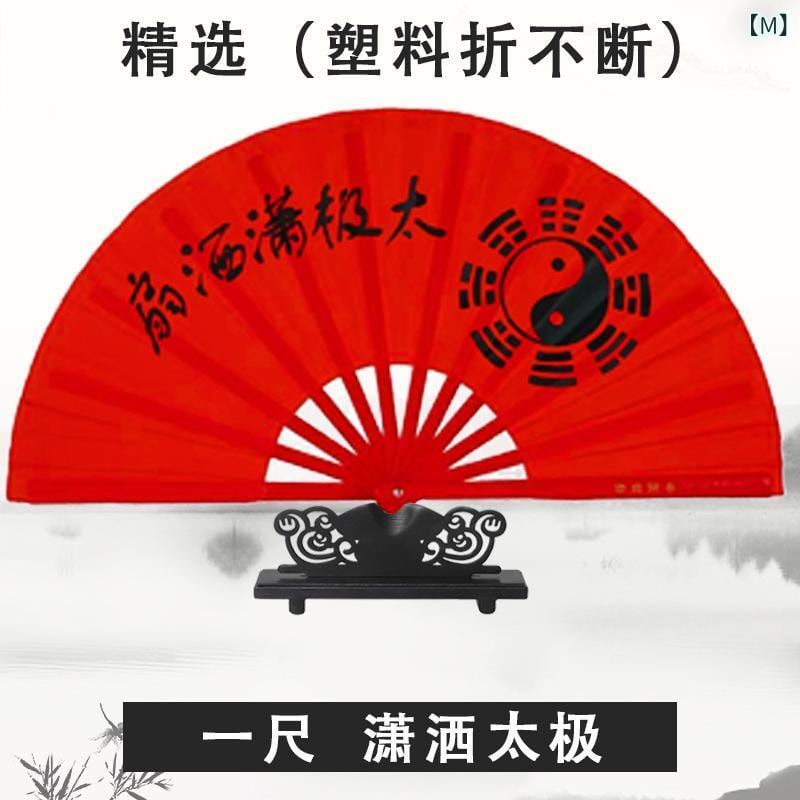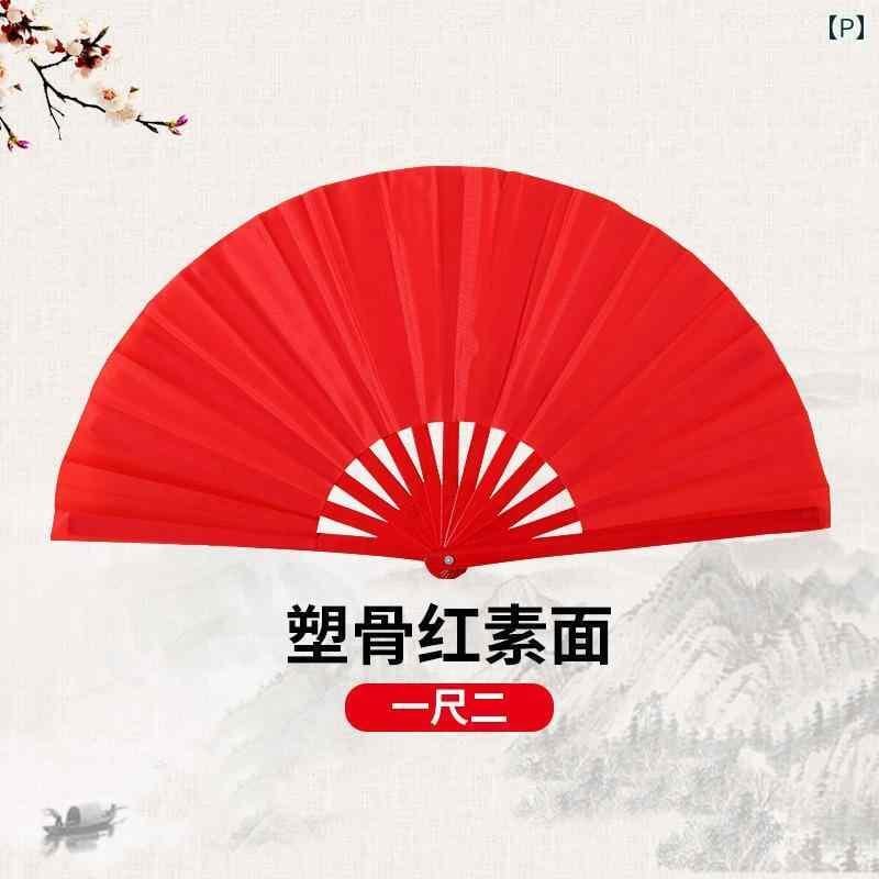 扇子 武術扇 太極扇 功夫扇 舞踊扇 ダンス扇 響き扇 子供 大人 男女兼用 練習用 演武用 パフォーマンス用 発表会用 竹骨 プラスチック骨製 軽量 丈夫 赤 レッド