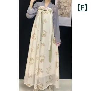 漢服 レディース エレガント 唐風 古典柄 印花 ハイウエストプリーツスカート 一体型 普段使い 華やか ゆったり ポリエステル