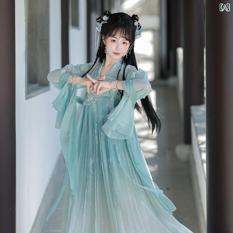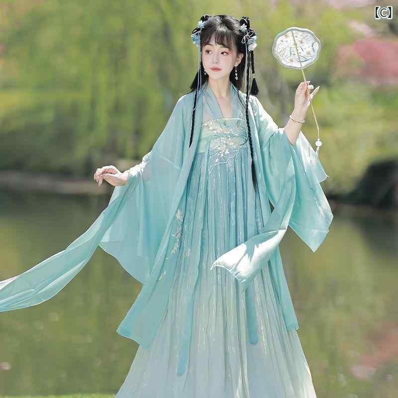漢服 レディース 中国風 斉胸襦裙 古典 ドレス 唐装 小柄 低身長向け 春秋 夏用 上品 優雅 レイヤードスタイル ポリエステル 再生繊維 フリルデザイン