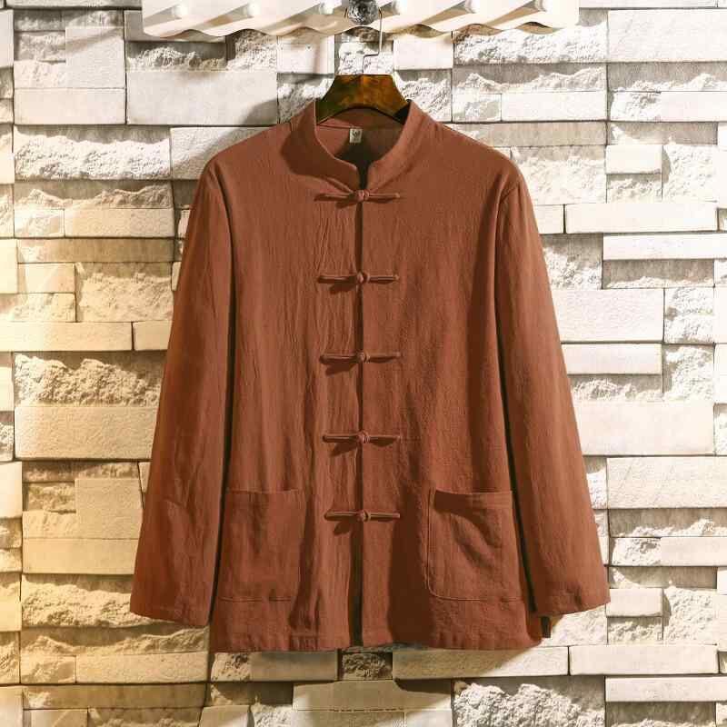 シャツ メンズ 長袖 綿麻 リネン 麻 ゆったり ルーズフィット スタンドカラー 立ち襟 中国風 チャイナ服 中山服 唐装 飾りボタン チャイナボタン 通気性 カジュアル 普段使い 無地 春秋