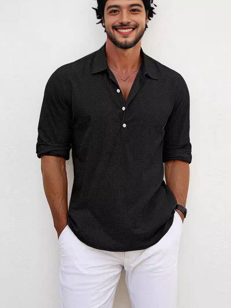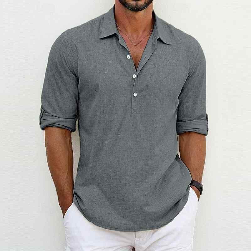 シャツ メンズ 大きいサイズ ビッグシルエット 無地 襟付き 長袖 綿混素材 通気性 耐久性 ウォッシャブル ルーズフィット カジュアル 部屋着 普段使い 袖ストラップ