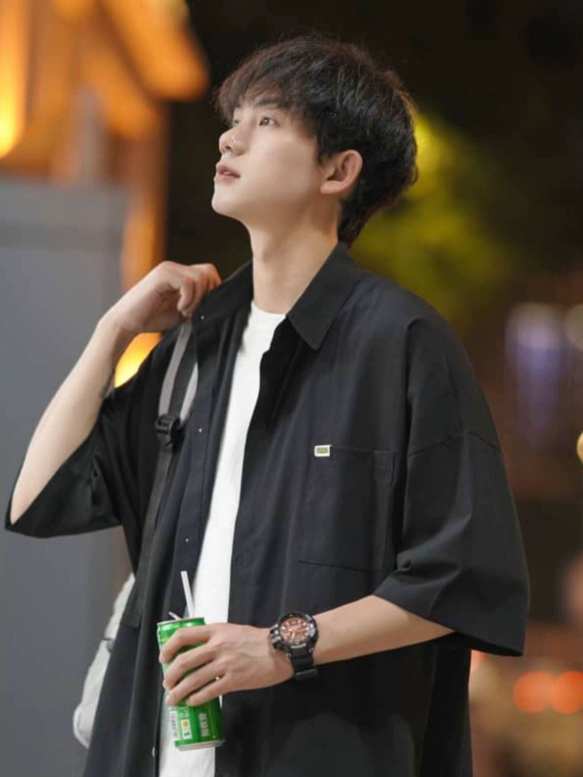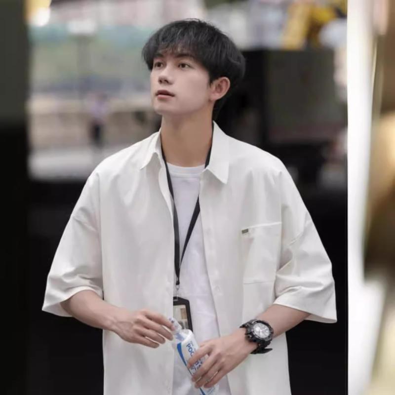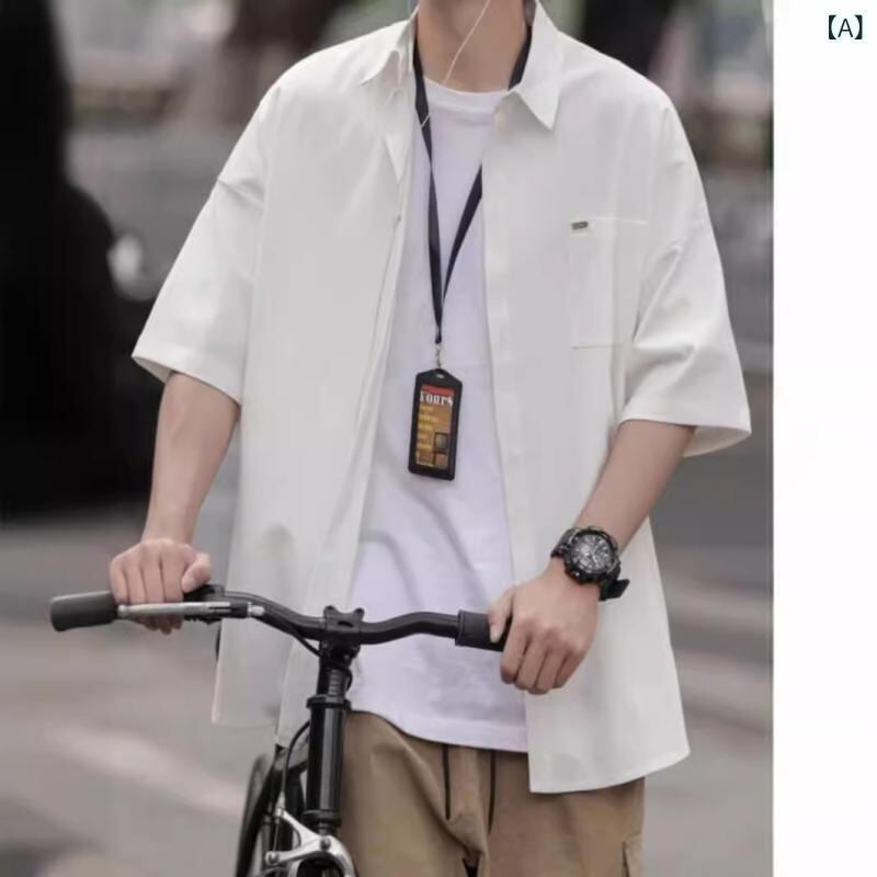 シャツ メンズ 半袖 夏 薄手 カジュアル ゆったり オーバーサイズ トレンド ルーズフィット オープンカラー ストリートファッション 普段使い シワになりにくい イージーケア ポリエステル混紡 無地 ブラック ホワイト