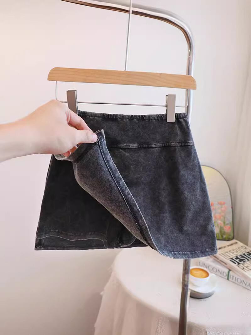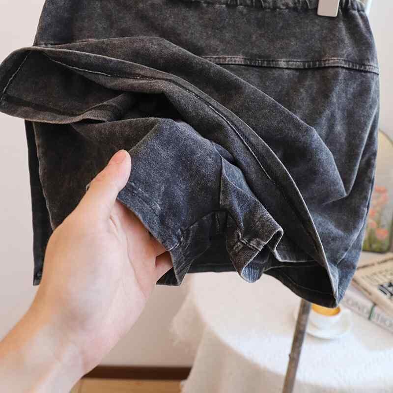 スカパン レディース ショート丈 アメリカン ウォッシュ加工 スポーツ ヨガ アクティブ インナーパンツ付き スリット タイト Aライン 綿 ストレッチ 無地 ブラック