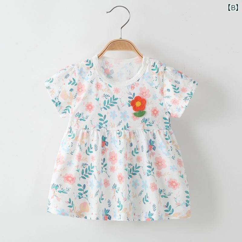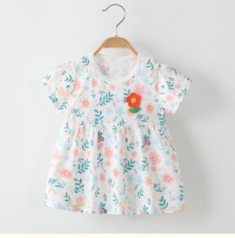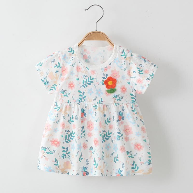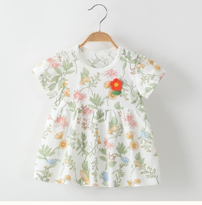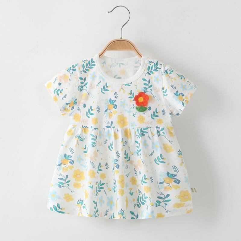ワンピース 女の子 ベビー 小花柄 プリンセスライン ドレス 夏 コットン100% 半袖 子供服 キッズ 普段使い お出かけ カジュアル Aライン フレアスカート かわいい おしゃれ 通気性 涼しい イエロー ピンク グリーン