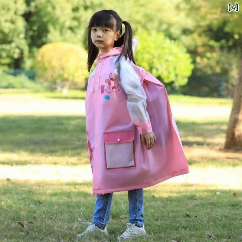 レインポンチョ キッズ 子供用 男女兼用 男の子 女の子 ランドセル対応 EVA素材 厚手 ロング丈 通学用 普段使い 撥水 防水 ピンク 黄色 ホワイト