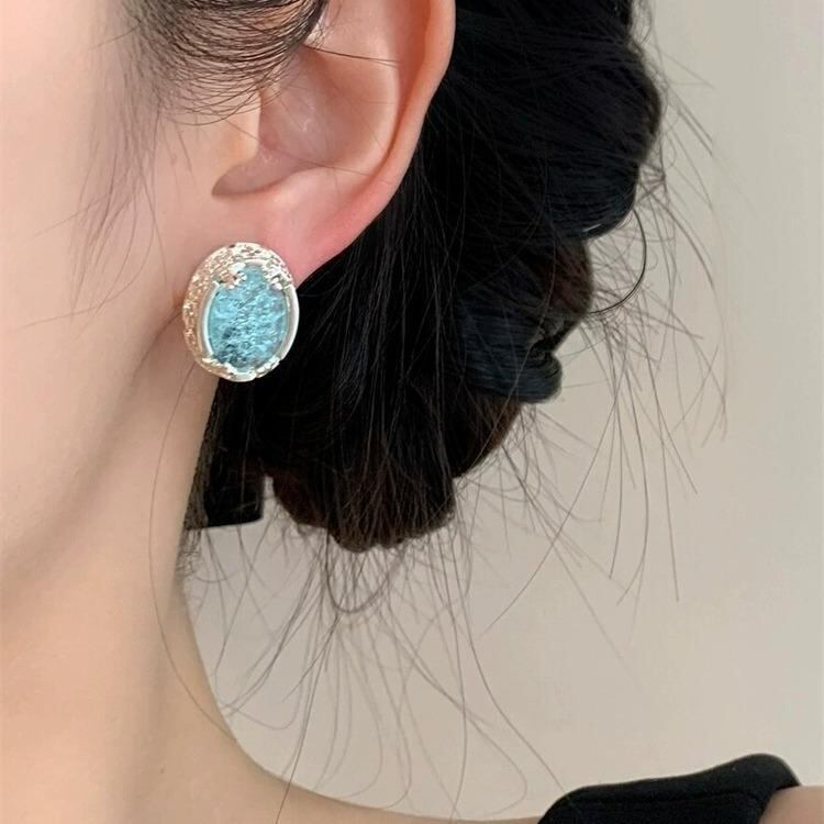 ピアス イヤリング ノンホールピアス 爽やかな ミントブルー 夏の フレンチデザイン 煌めく クリスタル 宝石 個性的 ユニーク 高級感