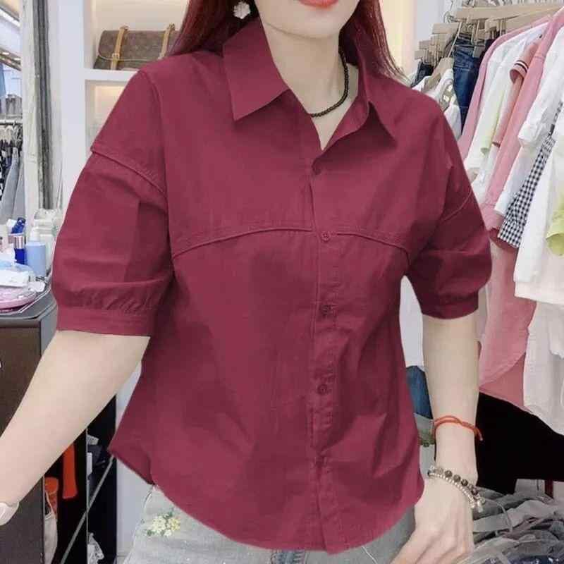ブラウス レディース トップス 半袖 カーディガン 薄手 ウエストシェイプ きれいめ 無地 ゆったり 着痩せ カジュアル 都市風 通勤 スタイル 夏 ポリエステル 羽織り シャツ襟 ボタン ファッション