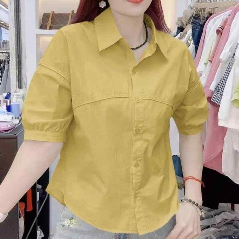 ・カテゴリ: 衬衫 ・スタイル: 都市風 ・主な素材: 涤纶(聚酯纤维) ・素材含有量: 30%以下 ・柄: 無地 ・袖丈: 半袖 ・ネックライン: シャツカラー ・袖のタイプ: シャツ袖 ・特徴: ボタン ・襟型: レギュラーカラー ・デザイン: プリント ・フィット感: レギュラー ・クロージャー: シングルブレストボタン ・カラー展開: ホワイト、ライトイエロー ・サイズ展開: M、L、XL、XXL