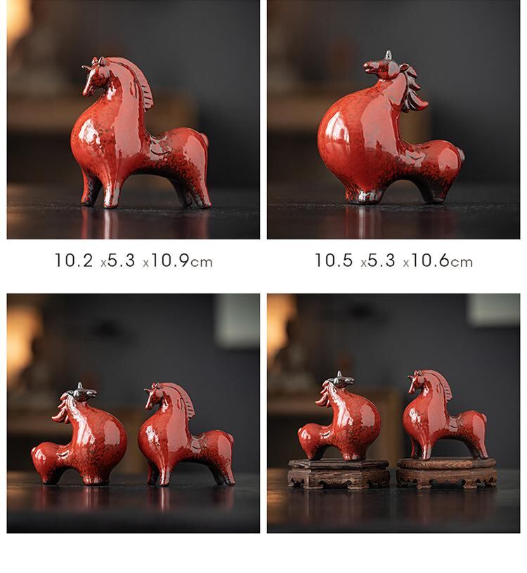 置物 唐馬 陶器製 赤系 モダンチャイニーズスタイル 金運招来 開運招福 干支 馬 縁起物 リビングルーム 玄関 デスク ワインキャビネット インテリア 装飾 オブジェ 贈り物 | cybercart