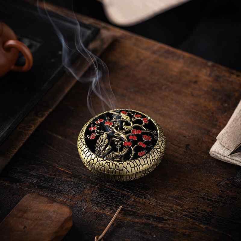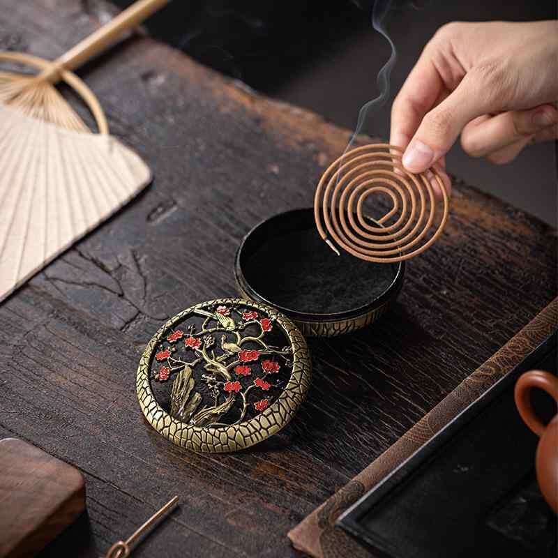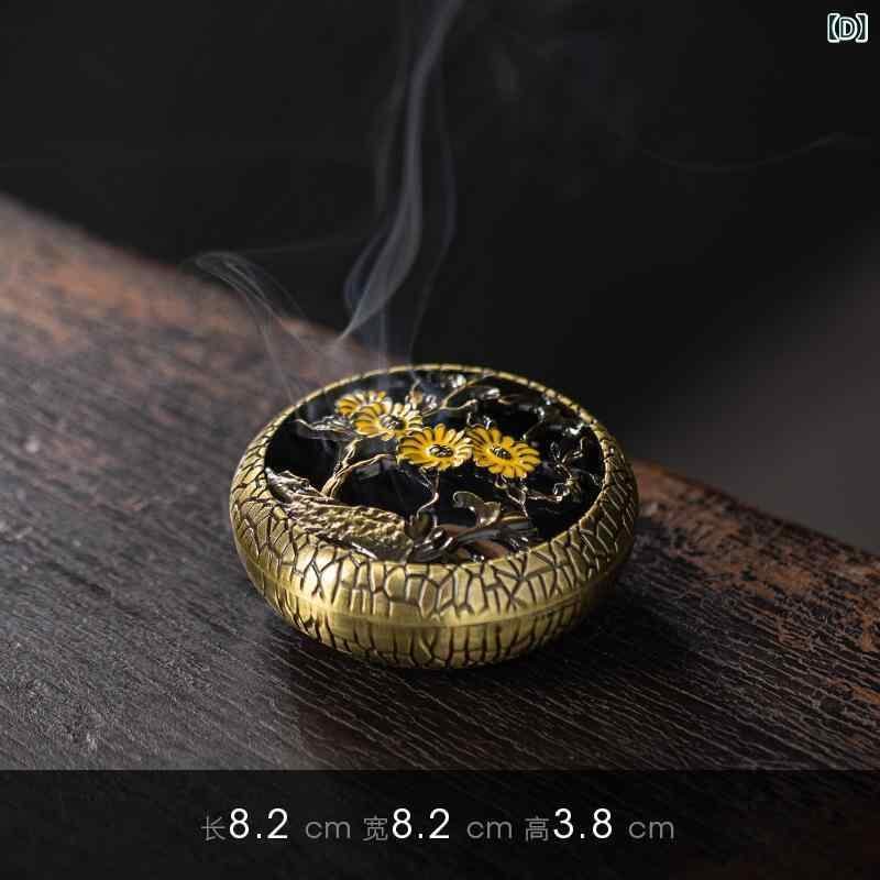 香炉 合金製 四君子模様 アンティーク調 レトロ 伝統的 室内用 リビング 書斎 瞑想 茶道 癒し お香立て 渦巻き線香 香篆炉 香皿 置物 インテリア 飾り