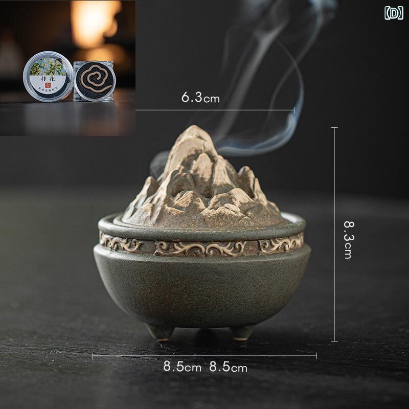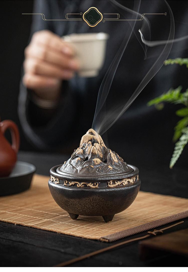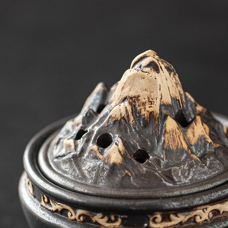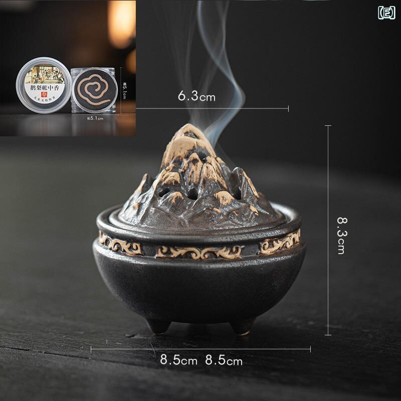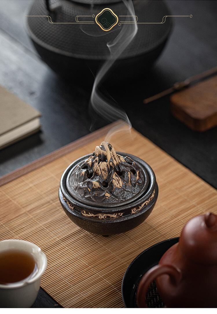 香炉 博山型 陶器製 小型 家庭用 室内用 リビング 書斎 玄関 和室 レトロ クラシック 和モダン 禅風 インテリア おしゃれ 渦巻き香 コーン香 印香 練り香 アロマ リラックス 癒し ブラウン ブラック