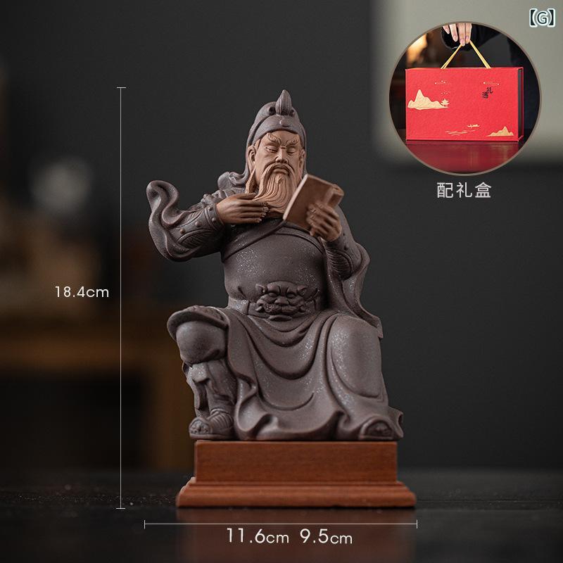 置物 三国志 武将 関羽夜読春秋 関平 周倉 陶器製 中国風 インテリアオブジェ 書斎 リビング 玄関飾り 和室 アジアンテイスト コレクション 人物像 縁起物