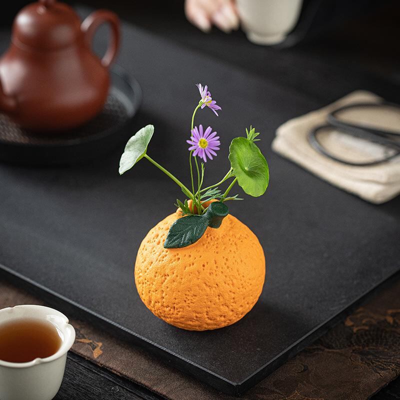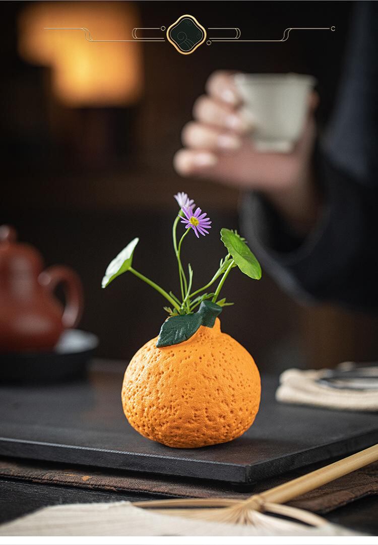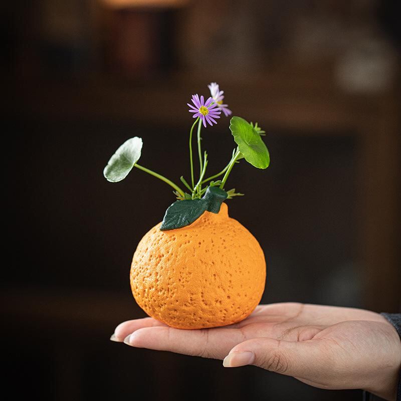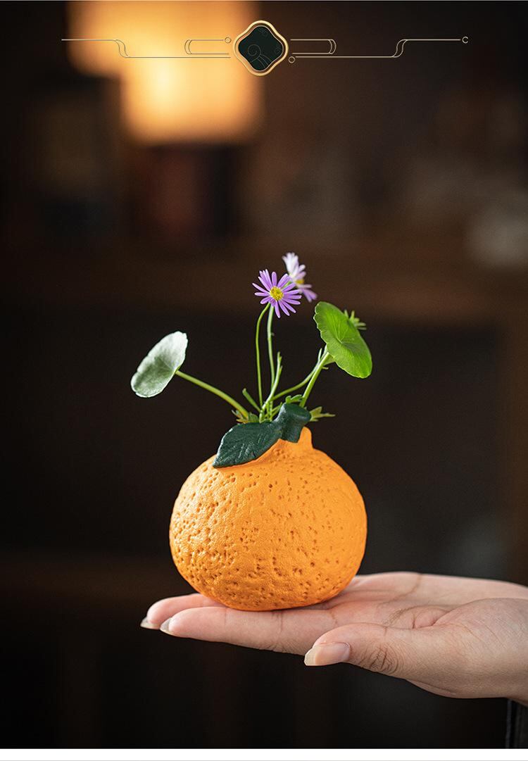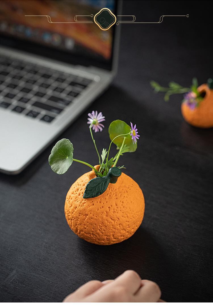 花瓶 陶器製 かわいい オレンジ型 水耕栽培対応 ドライフラワー 生け花 飾り リビング ダイニング オフィス 卓上 おしゃれ モダン インテリア 花器 オブジェ フルーツモチーフ