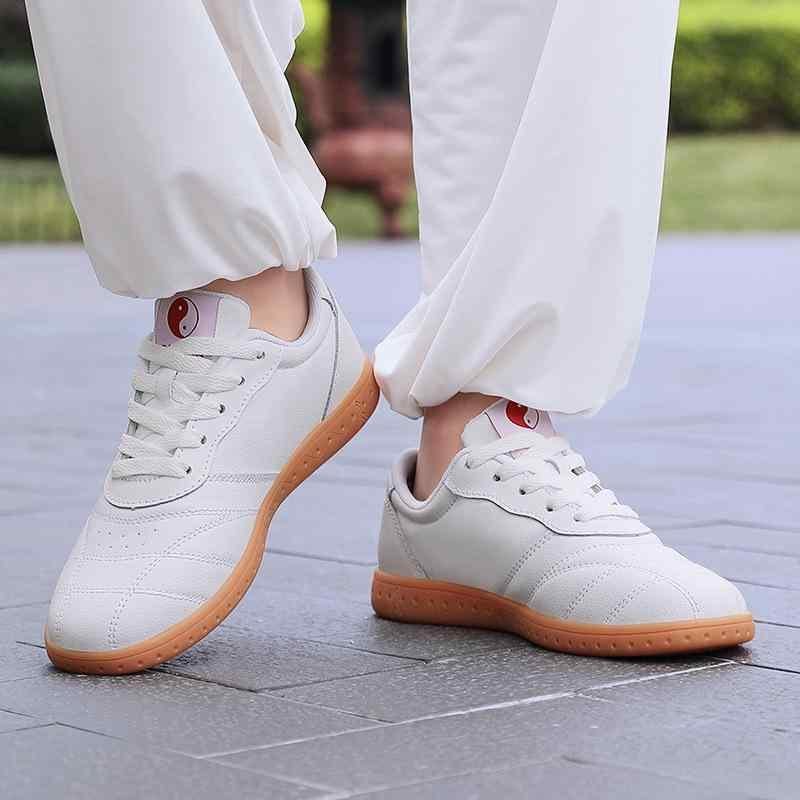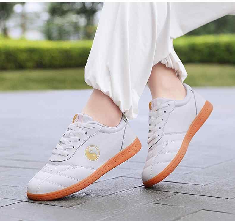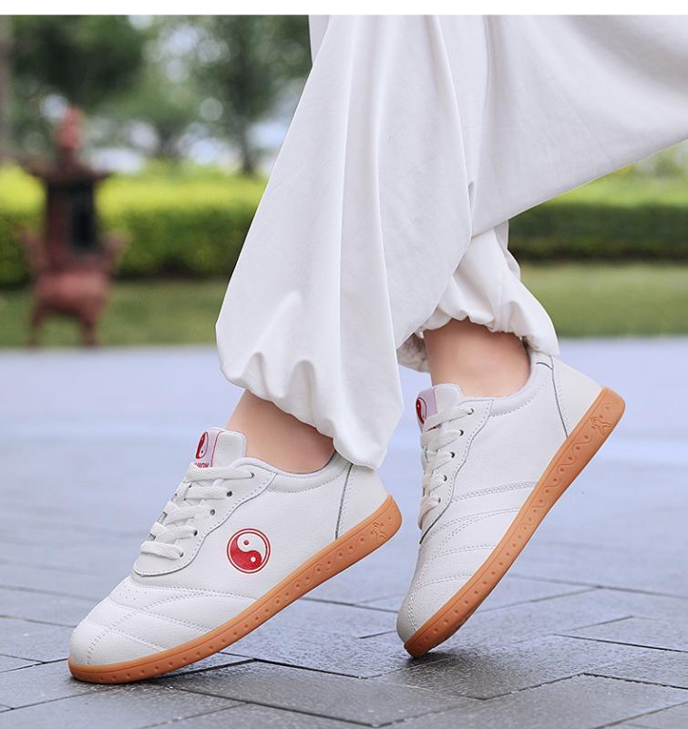 太極拳シューズ 男女兼用 本革 ソフト牛革 ゴム底 耐摩耗ソール 滑り止め 防滑 武術 練習用 稽古用 トレーニング カンフー ヨガ フィットネス エクササイズ 軽量 通気性 吸汗性 メッシュ裏地 ローカット レースアップ オールシーズン 白 ホワイト