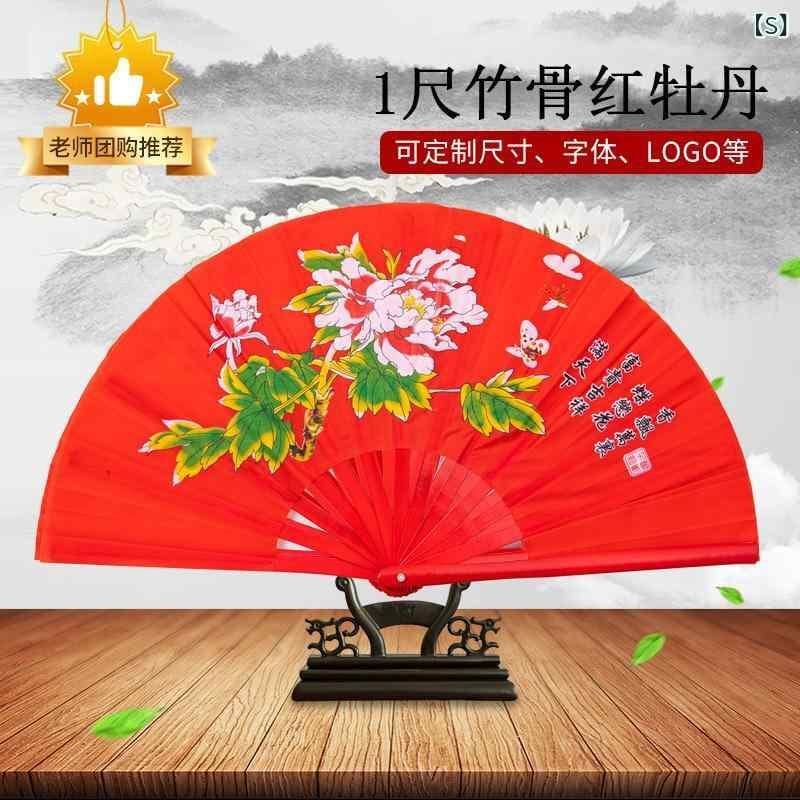 武術扇 太極扇 功夫扇 響扇 両面仕様 チャイナレッド レッド 演舞 舞踊 パフォーマンス 練習用 発表会用 軽量 開閉音 ABS樹脂製骨 竹製骨 学生 子供 大人 男女兼用 ユニセックス