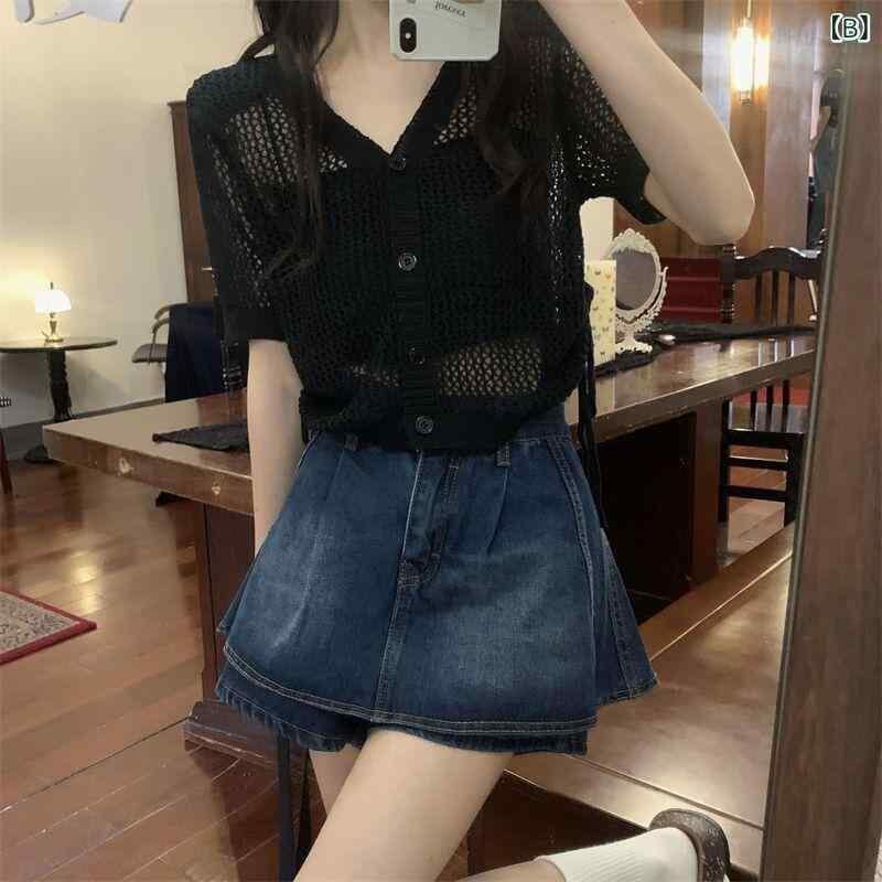 ニット レディース Vネック 半袖 ショート丈 ドローストリング 透かし編み メッシュ UVカット 接触冷感 サマーニット デザイン フェミニン かわいい 薄手 日焼け対策