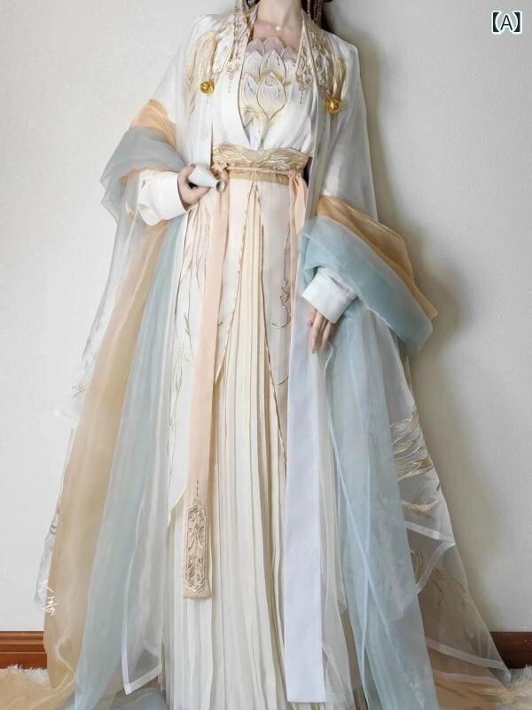 漢服 レディース 宋風 中国古典衣装 豪華刺繍 精密刺繍 大袖 ワイドスリーブ 優雅 仙女風 華やか ポリエステル イベント 舞台衣装 コスプレ パーティー 撮影