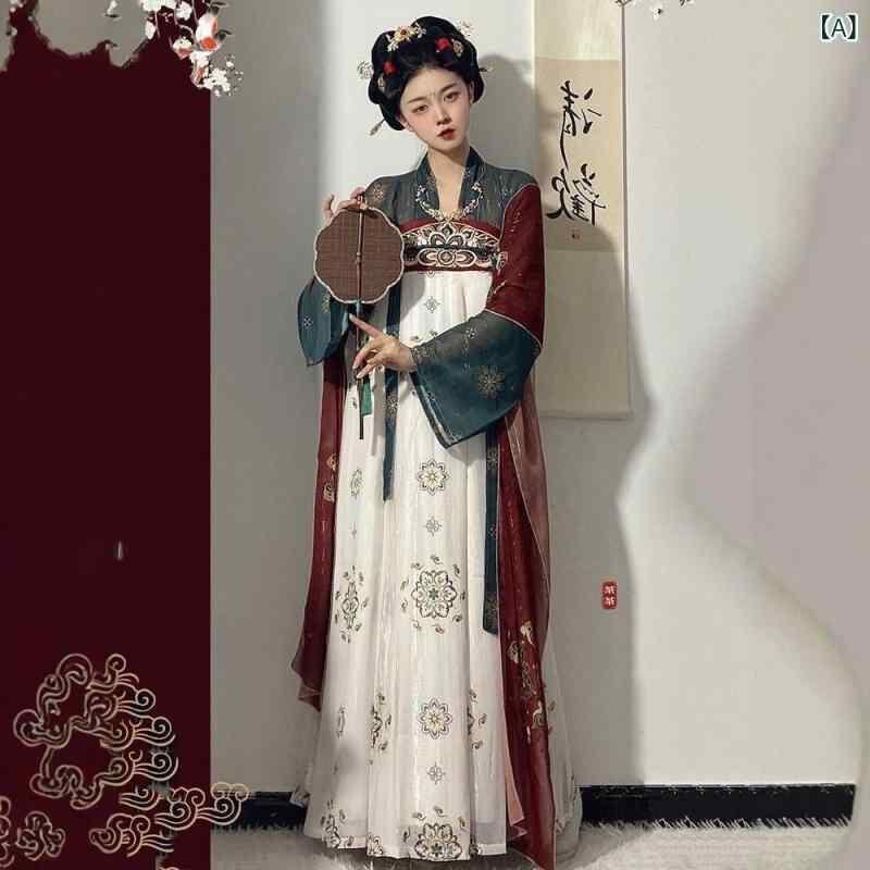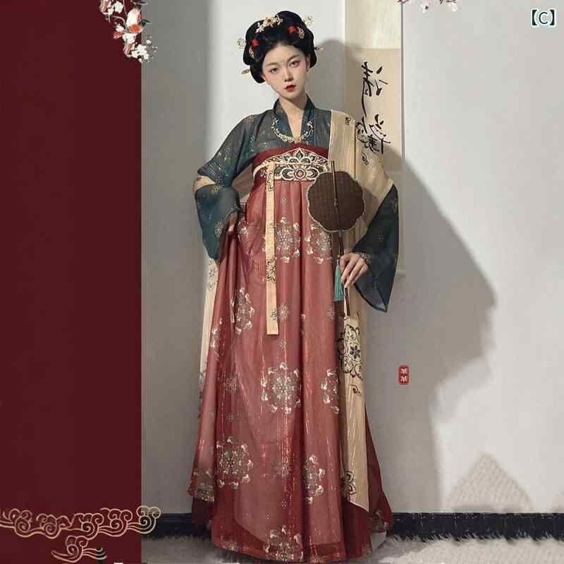 漢服 レディース 唐風 齊胸襦裙 復刻版 刺繡 セットアップ 日常使い シフォン ポリエステル 高級感 ハイウエスト ロング丈