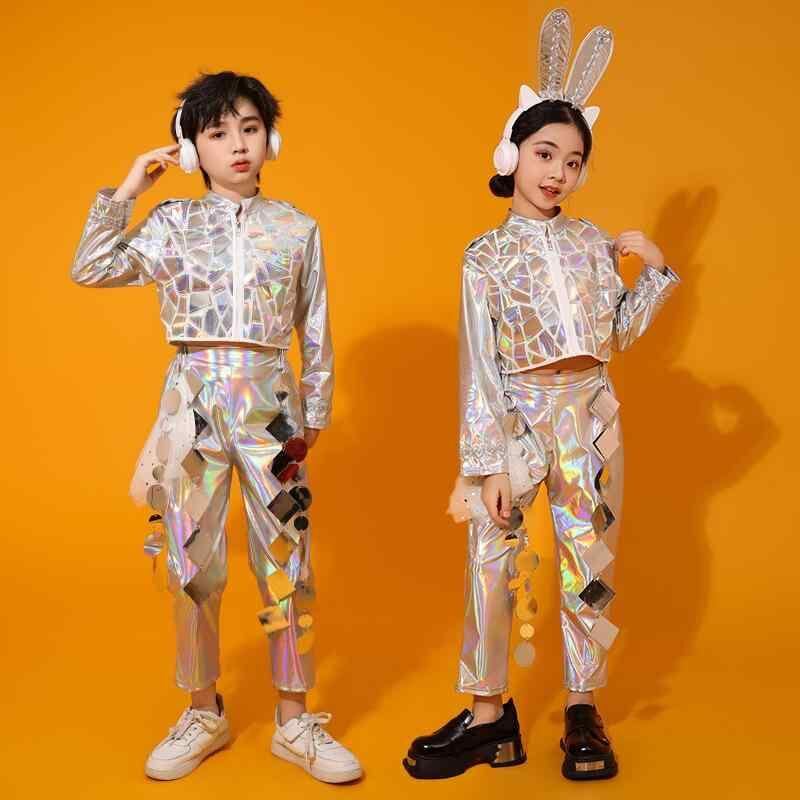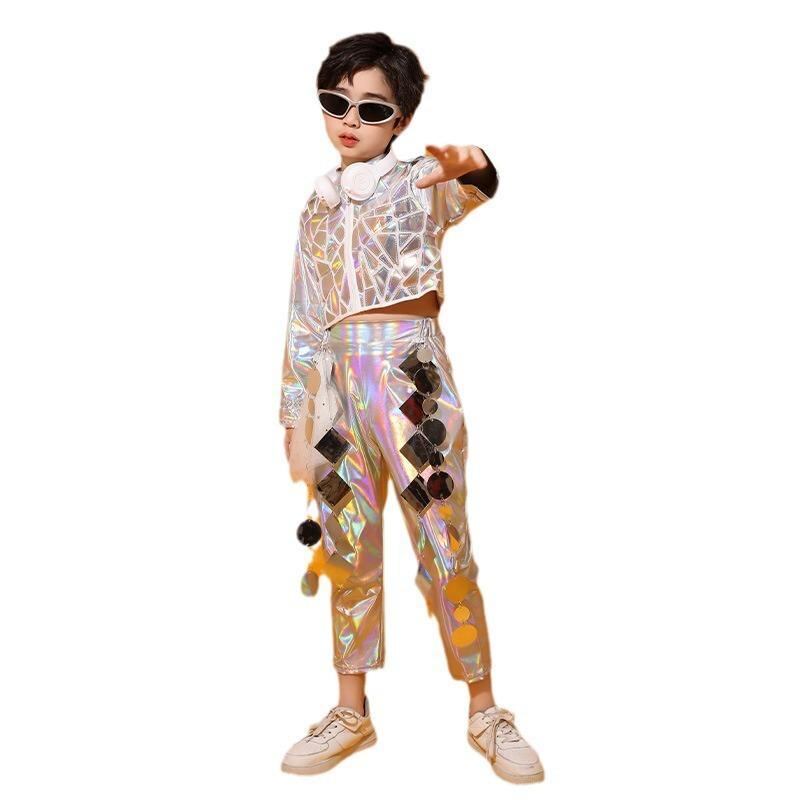 ダンス衣装 キッズ 男女兼用 シルバースパンコール ロボット風 近未来 SF テックデザイン 発表会 ステージ衣装 パーティー イベント コスチューム
