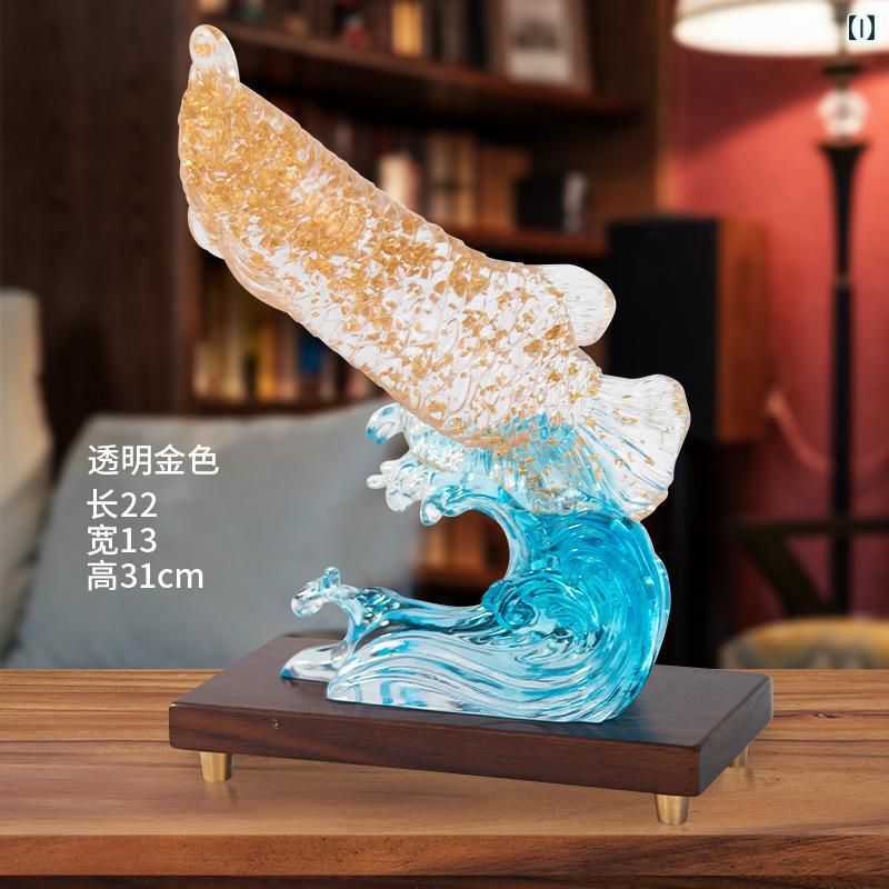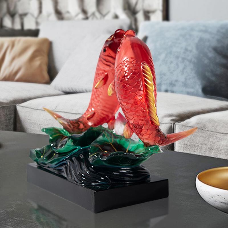 置物 卓上オブジェ インテリア雑貨 双魚 透明魚 蓮 月夜 モダン中華風 リビング 玄関 テレビ台 酒棚 装飾品 新築祝い 引越し祝い ギフト プレゼント 樹脂製