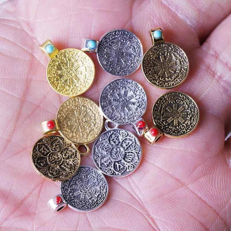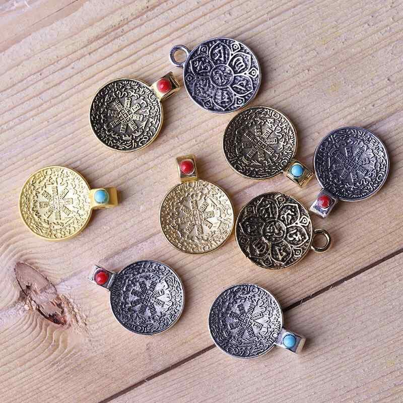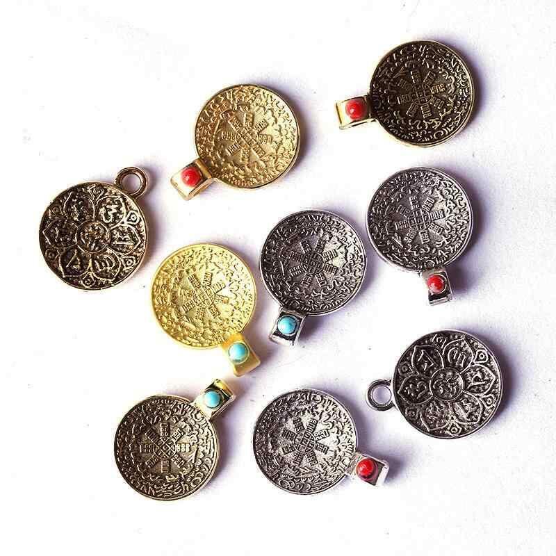 アクセサリーパーツ チベット風 九宮八卦 合金 金メッキ ペンダント ネックレス トップ チャーム 龍鳳紋 図騰 民族風 レトロ お守り 風水 数珠パーツ DIY 中型 飾り 装飾