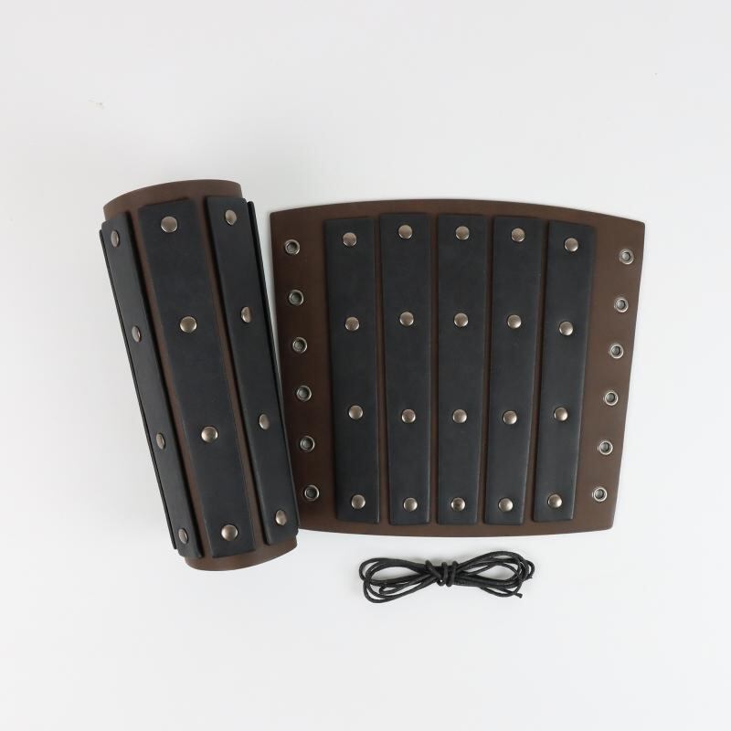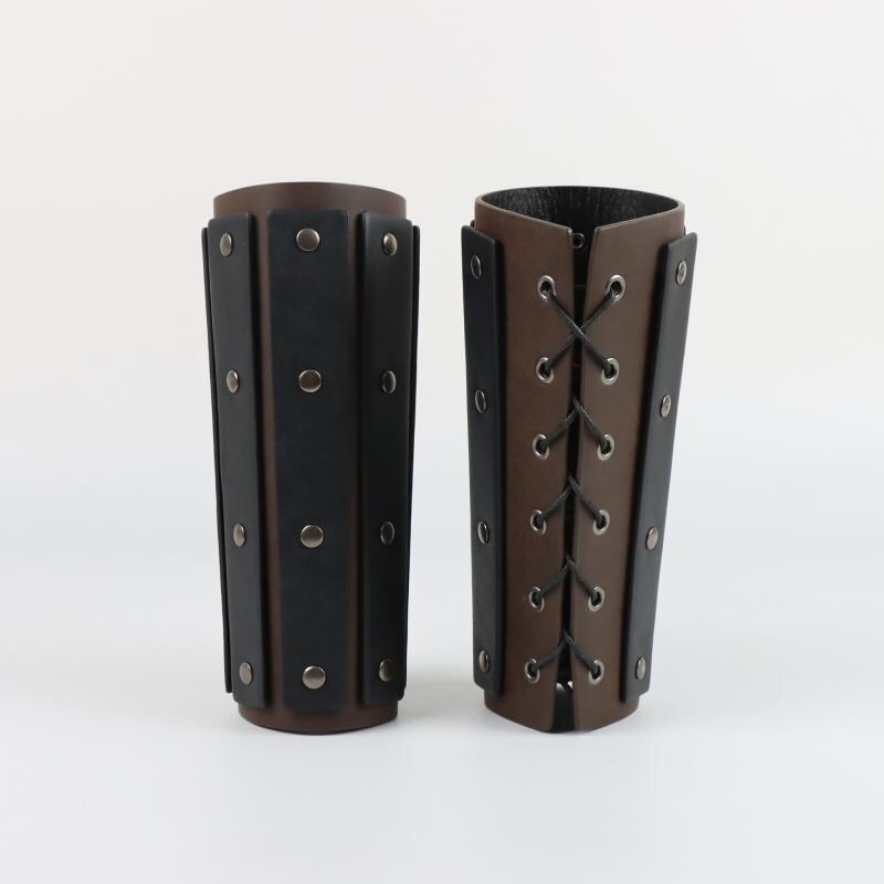 アームガード 中世風 レトロ ナイト 傭兵 コスプレ小道具 PUレザー ロングリベットデザイン アウトドア サイクリング シューティング 登山 ブラウン ブラック
