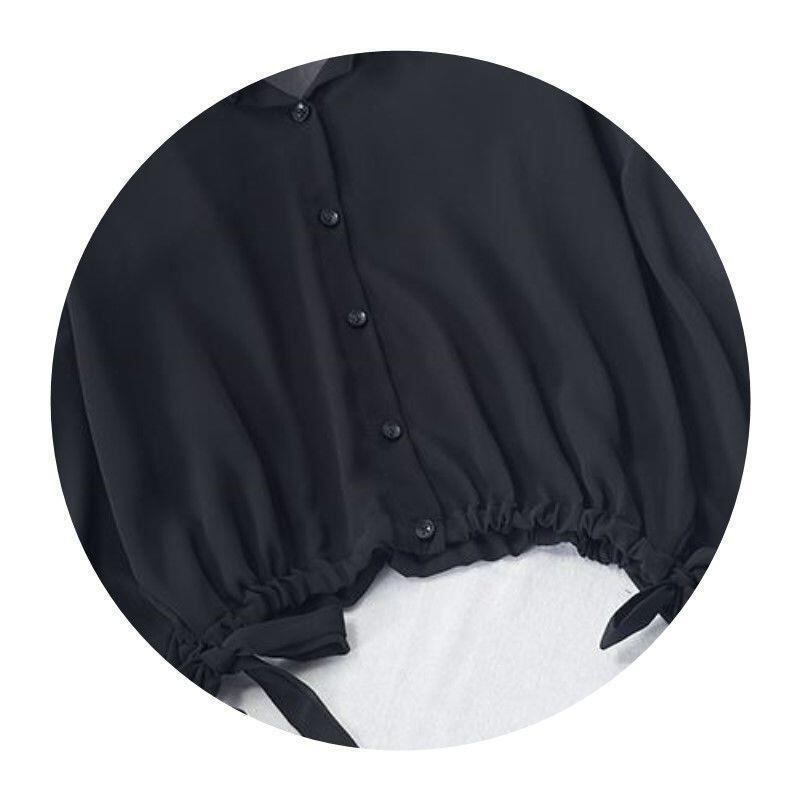 ・素材: シフォン・主な素材: ポリエステル・ネックライン: ポロネック・袖の形: フリルスリーブ・袖丈: 長袖・カラー展開: ホワイト、ブラック、グレー・サイズ展開: S、M、L、XL、2XL・スタイル: きれいめカジュアル・着用スタイル: カーディガン・素材構成比: ポリエステル95%以上・性別: レディース