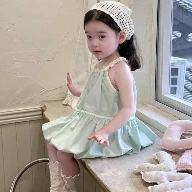ワンピース キッズ 女の子 ノースリーブワンピース ふんわりシルエット コットン100% 夏服 ベビー 幼児 柔らかい肌触り 無地 韓国風 カジュアル 普段使い お出かけ着 かわいい ミントグリーン ベージュ