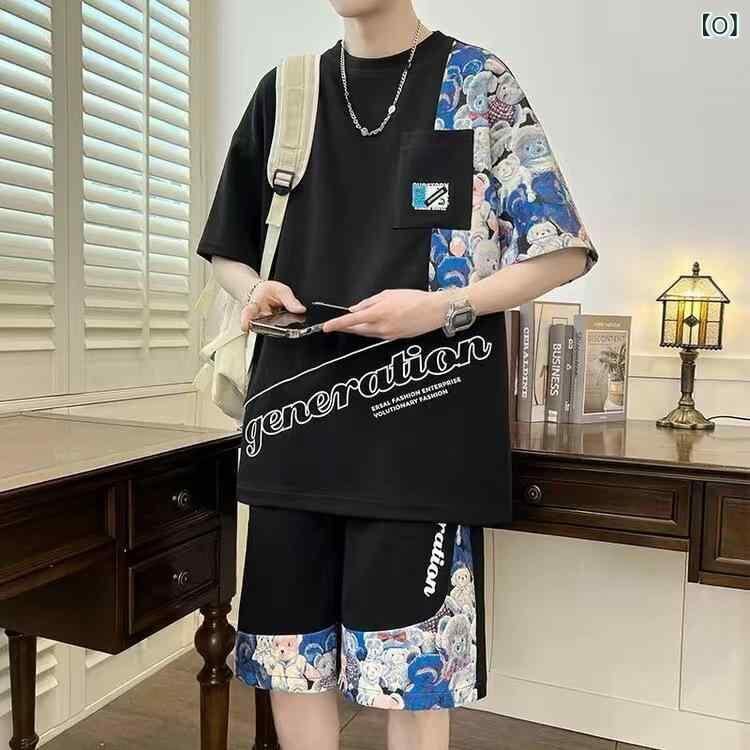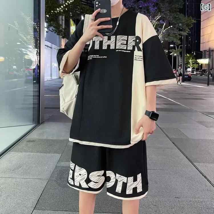 メンズ スポーツ セットアップ 半袖 Tシャツ トップス ショートパンツ ハーフパンツ 短パン 上下セット 接触冷感 クール素材 薄手 ポリエステル 吸湿速乾 夏 カジュアル ルームウェア 部屋着 普段使い アクティブウェア ティーン向け