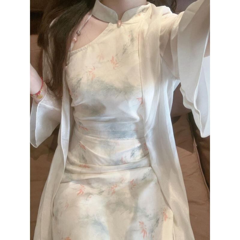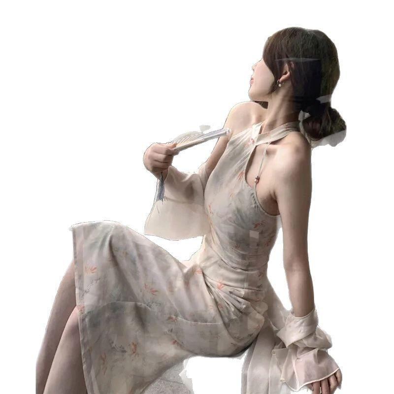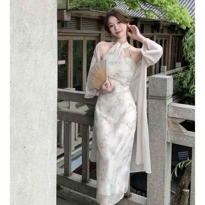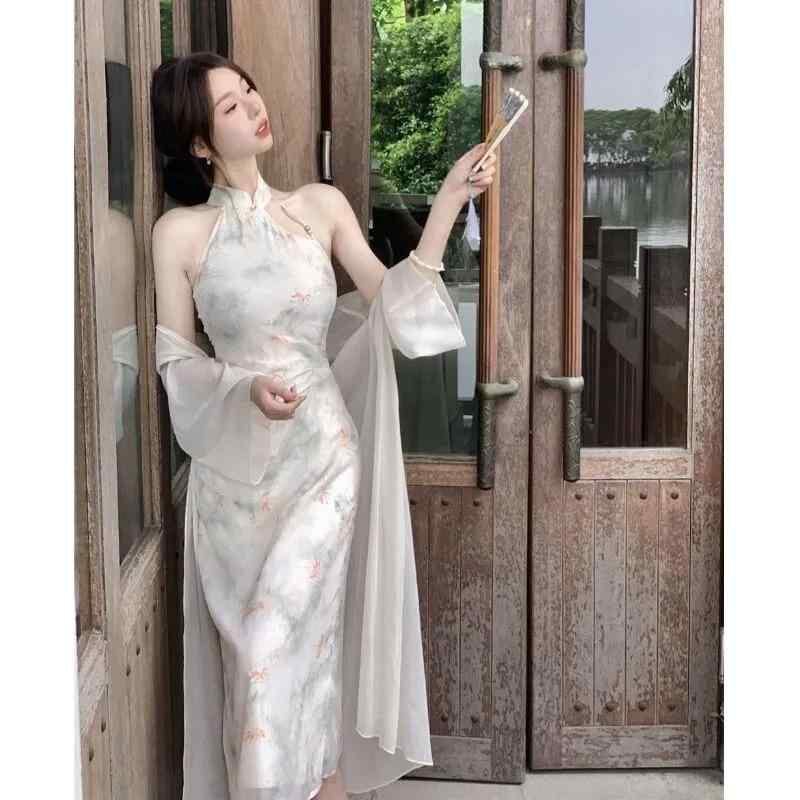 ワンピース レディース チャイナドレス風 ホルターネック 中国風 ローブ モダンチャイナスタイル 日常使い セットアップ 低身長 春